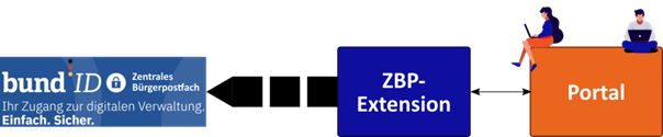 Die Übermittlung der Nachrichten erfolgt hierbei aus dem Portalpostfach der Nutzenden an das BundID-Postfach, das zu der BundID gehört, mit der sich eine Person am Portal angemeldet hat. Dadurch kann in der Sachbearbeitung von Anträgen die Kommunikation mit den Antragstellenden identisch zum Status Quo erfolgen: Sachbearbeitende stellen wie gehabt Nachrichten in das Portalpostfach der antragstellenden Person ein, und die Extension übernimmt die Übermittlung an das Postfach der BundID.